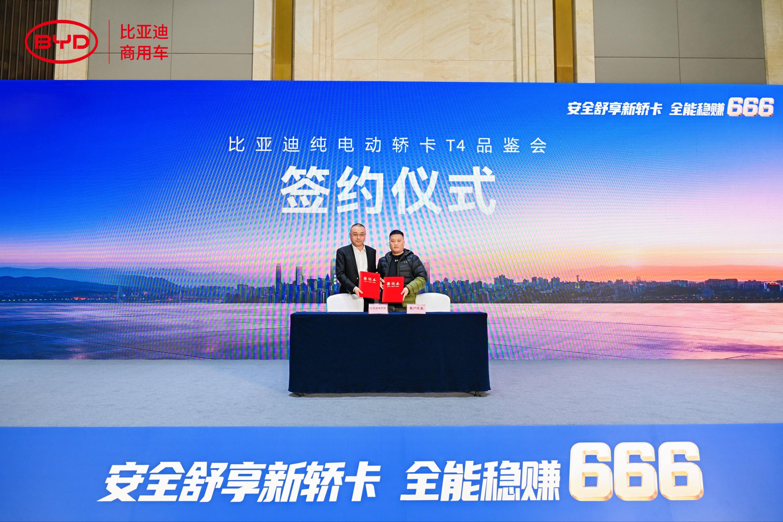 作为全球新能源商用车引领者,比亚迪凭借全产业链技术优势与销服一体模式, 为用户打造购车、用车、换车全周期解决方案。本次品鉴会圆满举办,既彰显T4产品竞争力,也体现比亚迪深耕区域市场、助力物流行业高效低碳转型的坚定决心。